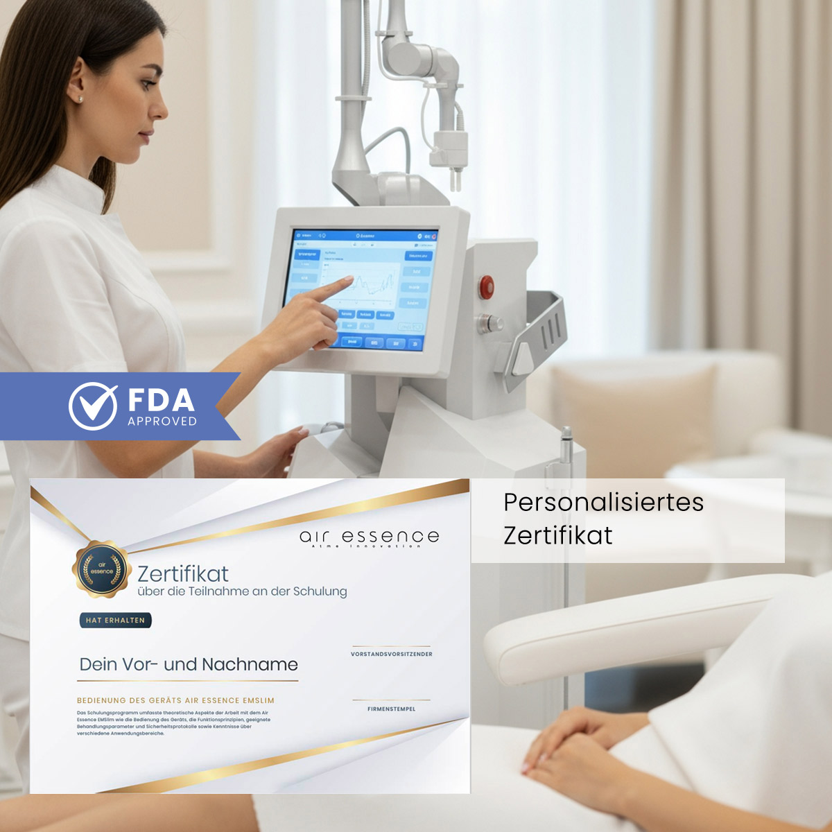 Nach Abschluss der Schulung erhalten Sie ein personifiziertes Zertifikat, das Ihre Qualifikation bestätigt und Ihnen ermöglicht, sofort mit Behandlungen zu beginnen.