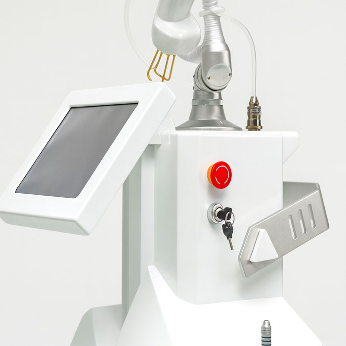 Das Gerät verfügt über einen großen 12-Zoll-HD-Bildschirm, der eine komfortable Bedienung und hervorragende Sichtbarkeit aller Behandlungsparameter bietet. Die integrierte RF-Technologie unterstützt die Hautregeneration und verstärkt die Wirkung des Lasers.