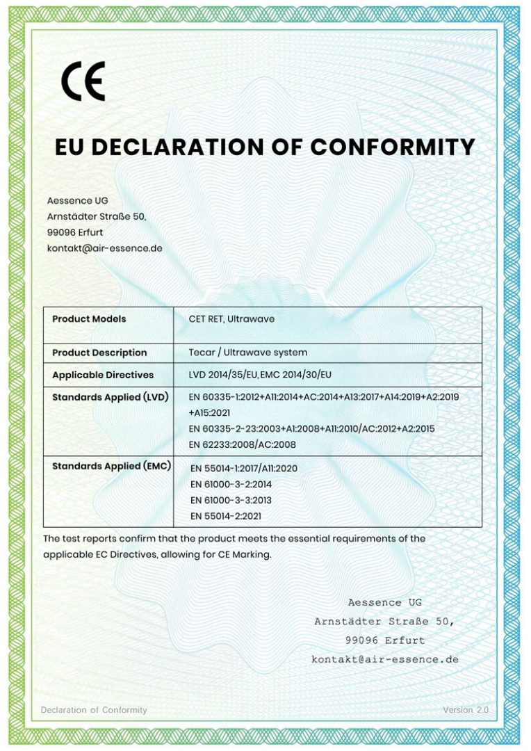 Jeder Kauf eines Air Essence Geräts umfasst eine 2-jährige Garantie.