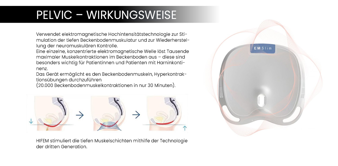 Das Pelvic-Gerät nutzt eine fortschrittliche Technologie elektromagnetischer Impulse, die die tiefen Muskelschichten auf natürliche und mühelose Weise aktivieren.
