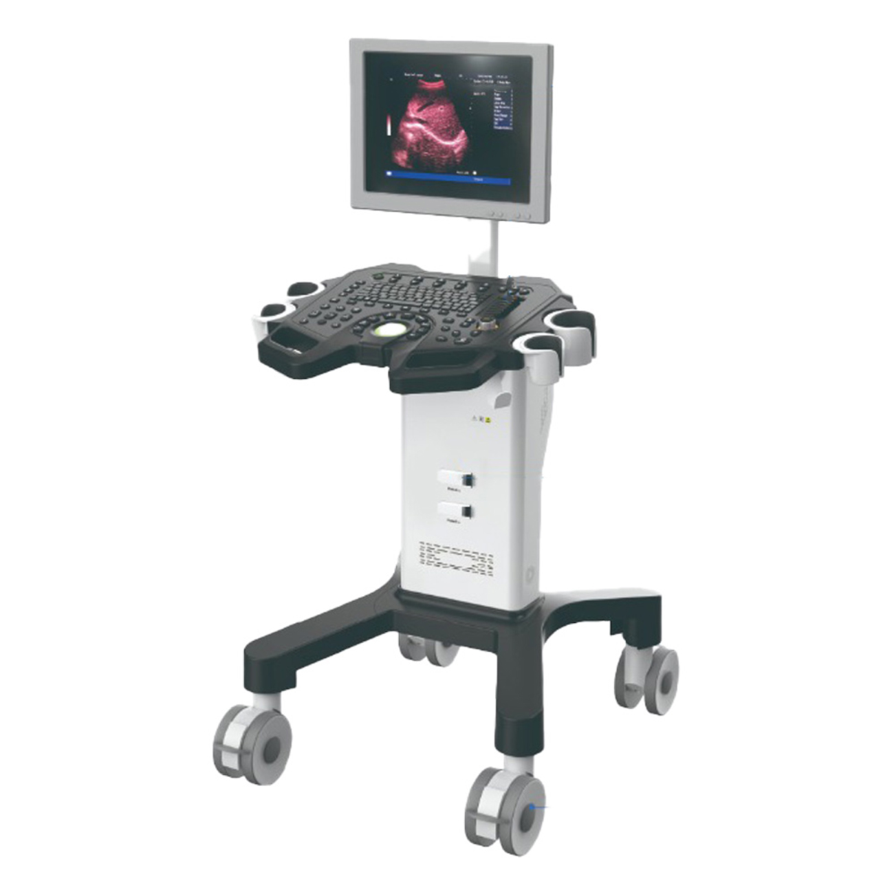 to nowoczesny, wózkowy ultrasonograf cyfrowy stworzony z myślą o szerokim zastosowaniu diagnostycznym w szpitalach, klinikach i gabinetach lekarskich. Urządzenie zapewnia wysoką jakość obrazowania w czasie rzeczywistym, a jego konstrukcja łączy zaawansowane technologie z prostotą obsługi. Dzięki architekturze systemu opartej na chipie ARM ultrasonograf działa stabilnie i szybko, oferując intuicyjny interfejs.