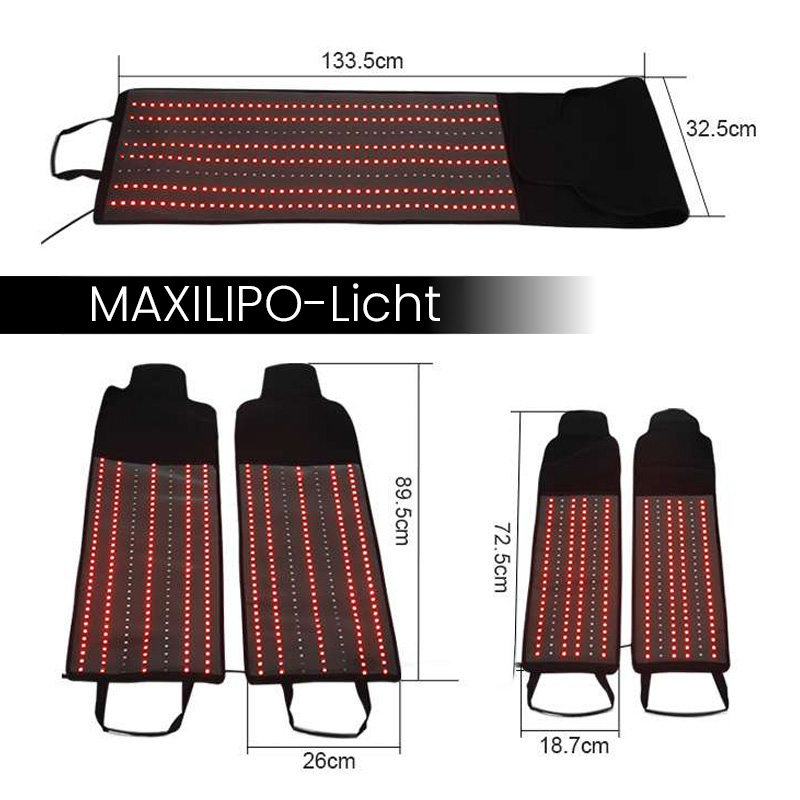 Die Maxlipo-Gürtel sind ein innovatives Gerät, das fortschrittliche Lichttechnologie mit Wellenlängen von 635 nm und 940 nm kombiniert.