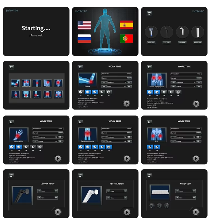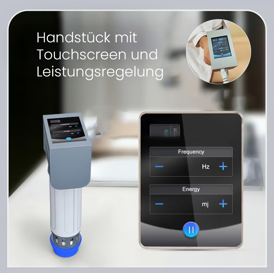 Das Gerät ist mit einem ergonomischen Applikator ausgestattet, bei dem Frequenz und Energie individuell einstellbar sind. Austauschbare Aufsätze ermöglichen eine präzise Anpassung der Therapie an die jeweiligen Bedürfnisse.