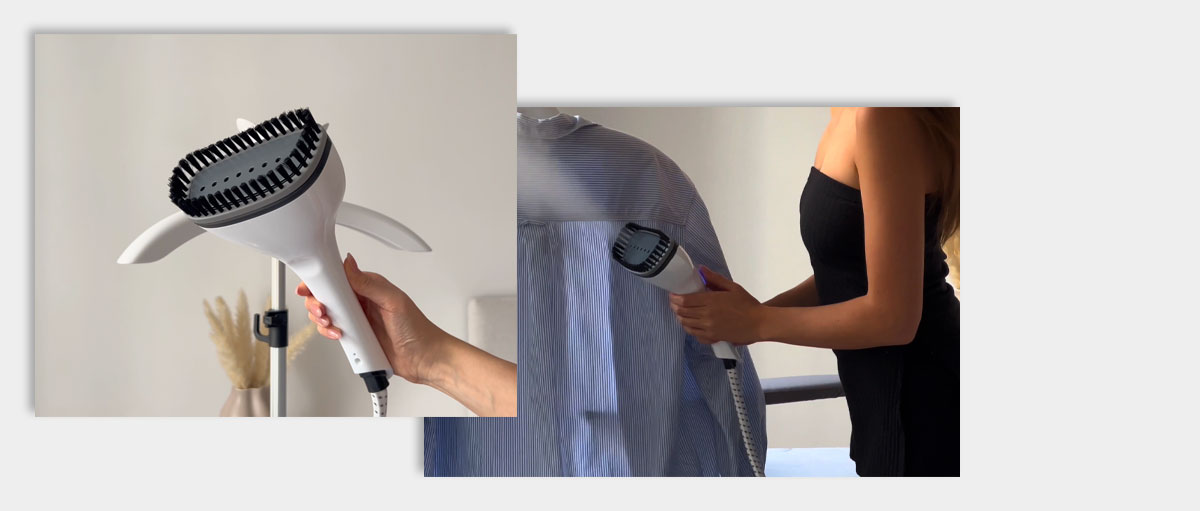 Seine außergewöhnliche Funktionalität wird durch den abnehmbaren Aufsatz für den Dampfkopf ergänzt, der effektiv Fussel, Haare und viele andere unerwünschte Verunreinigungen entfernt. Dank dieses innovativen Aufsatzes können wir uns leicht hartnäckiger Falten und unansehnlicher Verunreinigungen von unseren Lieblingskleidungsstücken entledigen.