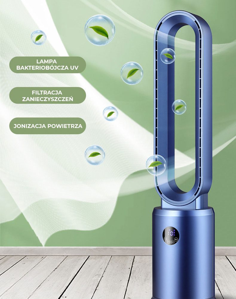Funkcje oczyszczania i jonizacji powietrza sprawiają, że ten wentylator to nie tylko urządzenie do chłodzenia, ale również innowacyjny system poprawy jakości powietrza w pomieszczeniu. Oczyszczanie powietrza pozwala na usunięcie zanieczyszczeń i alergenów, podczas gdy jonizacja dodatkowo odświeża powietrze, tworząc przyjemne i zdrowe środowisko do życia i pracy.